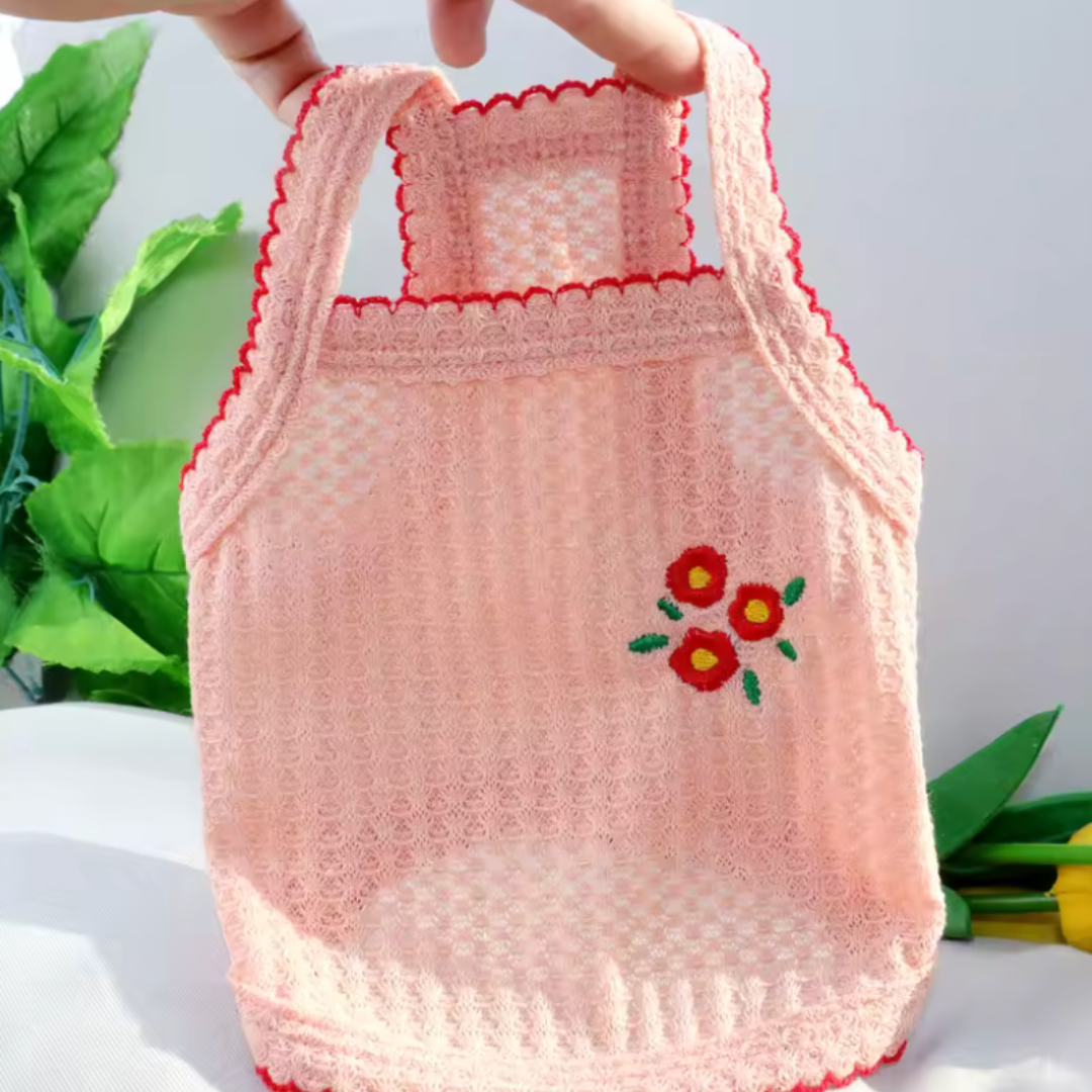 Make your pet stand out this summer with our Lace Blossom Top, designed for small dogs and cats. This lightweight, breathable vest combines style and comfort, making it perfect for warm weather adventures or cozy indoor lounging.