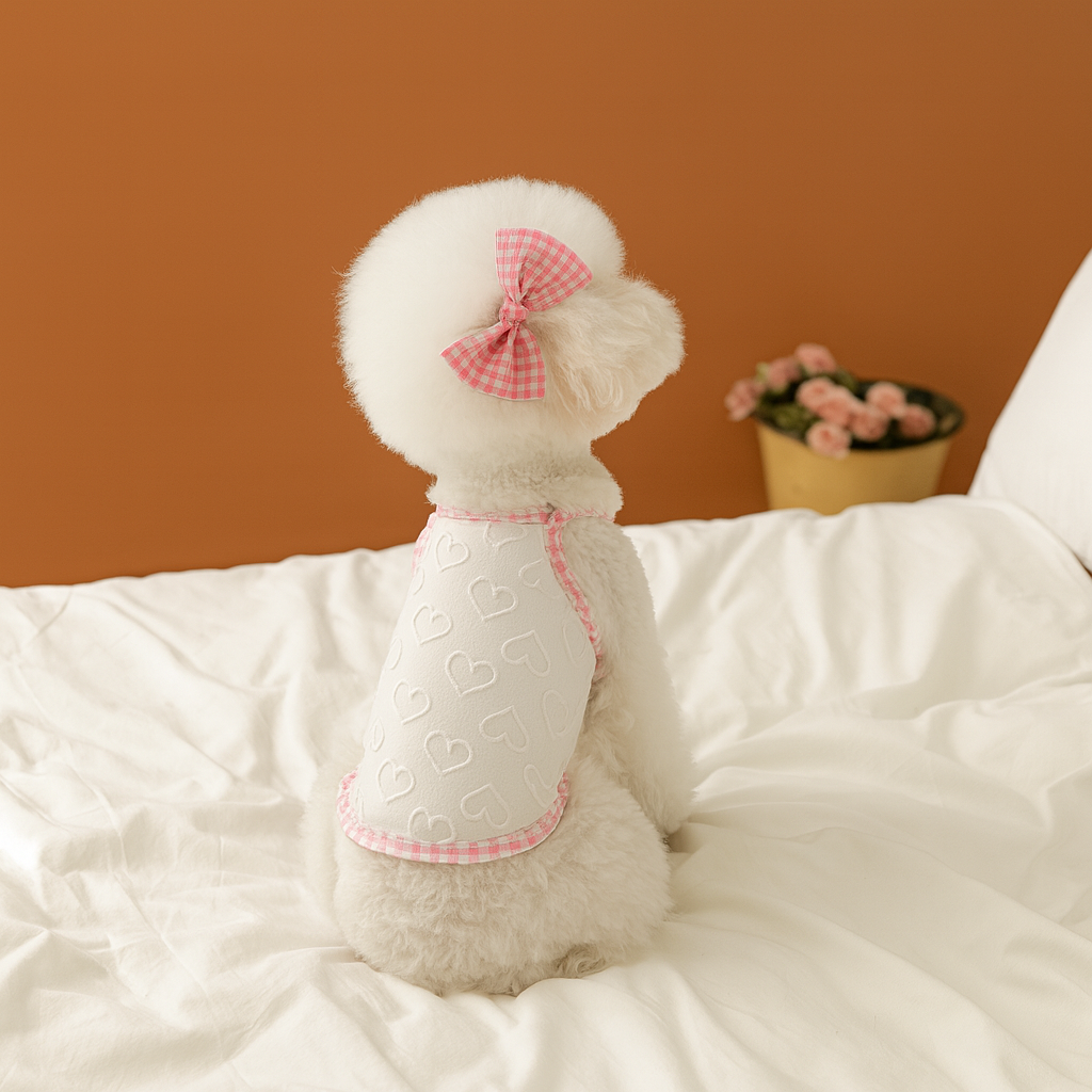 Add a touch of sweetness to your pet’s wardrobe with this adorable vest! Designed for both dogs and cats, this piece combines comfort and charm in one.